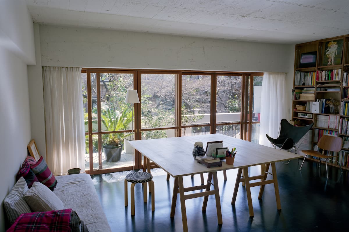 1960年代初期に建設された集合住宅の一室のリノベーションです。本体は、高度成長期が始まる頃に建った近代的建築で、経年を感じるものの無駄のない清廉なデザインが今だに目を引く物件です。本体がそうした魅力的な建築であることもあり、室内だけをインテリア的にリノベーションするのではなく、既存建築の理念にマッチするような、それを現代において解釈するとどうなるのか、というようなことを大切に設計をしました。